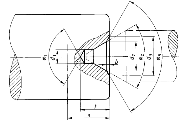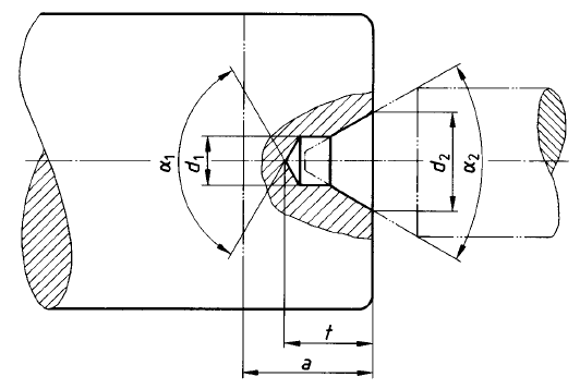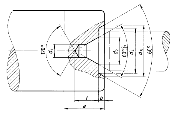 A norma DIN 332 define a geometria, dimensões e tipos de furos de centro. A norma especifica: